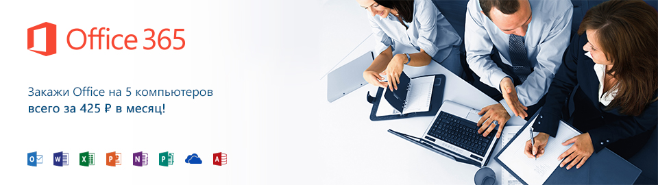 Всего за 425 рублей в месяц Вы получаете Office с правом установки на 5 компьютеров!